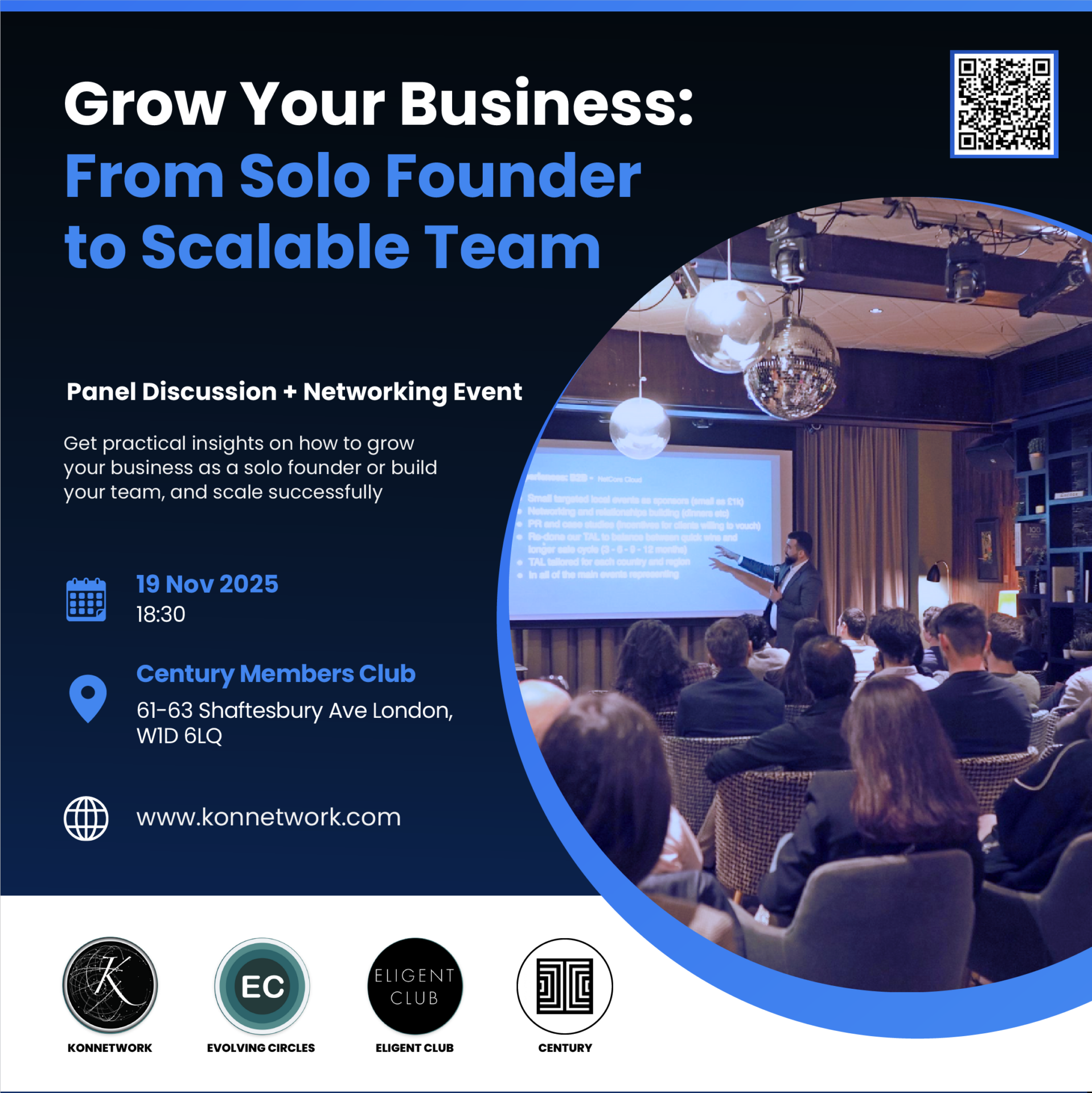 Founders Circle brings together solo founders and team-building entrepreneurs for an evening of real conversations, shared insights, and genuine connections. Through two focused panel discussions and plenty of networking time, you’ll gain practical takeaways and new perspectives to help you grow smarter — not just harder.